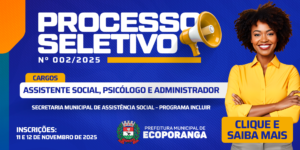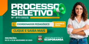 A Prefeitura de Ecoporanga, por meio da Secretaria Municipal de Educação e Cultura (SMEC), publicou o Edital nº 013/2025, que abre o Processo Seletivo Simplificado Interno para professores e servidores efetivos da rede municipal interessados em atuar nas escolas de Tempo Integral. As vagas contemplam as unidades Santa Luzia do Norte, Palmeiras, Gente Miúda, José Francisco de Oliveira (Níveis I e II), Professora Benedita Monteiro e CMEI Éber Teixeira Figueiredo. Os selecionados atuarão em regime de 35 horas semanais, conforme previsto no edital. O processo é composto por análise documental e de tempo de serviço, além da assinatura do Termo de Adesão à Escola de Tempo Integral. A classificação considerará experiência, formação específica e participação em projetos da SMEC. As inscrições estarão disponíveis nesta mesma matéria, no período de 14 a 23 de novembro de 2025, devendo o candidato preencher o formulário eletrônico e anexar a documentação exigida. O resultado final será divulgado em 4 de dezembro, e a escolha de vagas e assinatura do termo de adesão acontecerão em 22 de dezembro, às 17h, no auditório da SMEC. Segundo o secretário municipal de Educação e Cultura, Edion dos Santos Almeida, o objetivo é fortalecer o trabalho nas escolas de tempo integral e valorizar os profissionais da rede. Prefeitura Municipal de Ecoporanga – No caminho do avanço! EDITAL: RETIFICAÇÃO: Link para inscrição: https://forms.gle/RmT9yZYEU8ddKWZ36